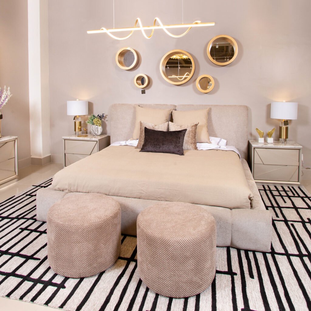 Recámara «Santorini» Champagne Panel Madera y Piedra