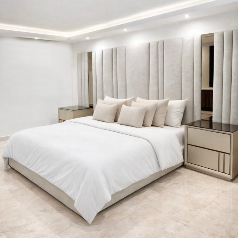 Recámara «Kristen» Medio Panel Tela y LED – Alto