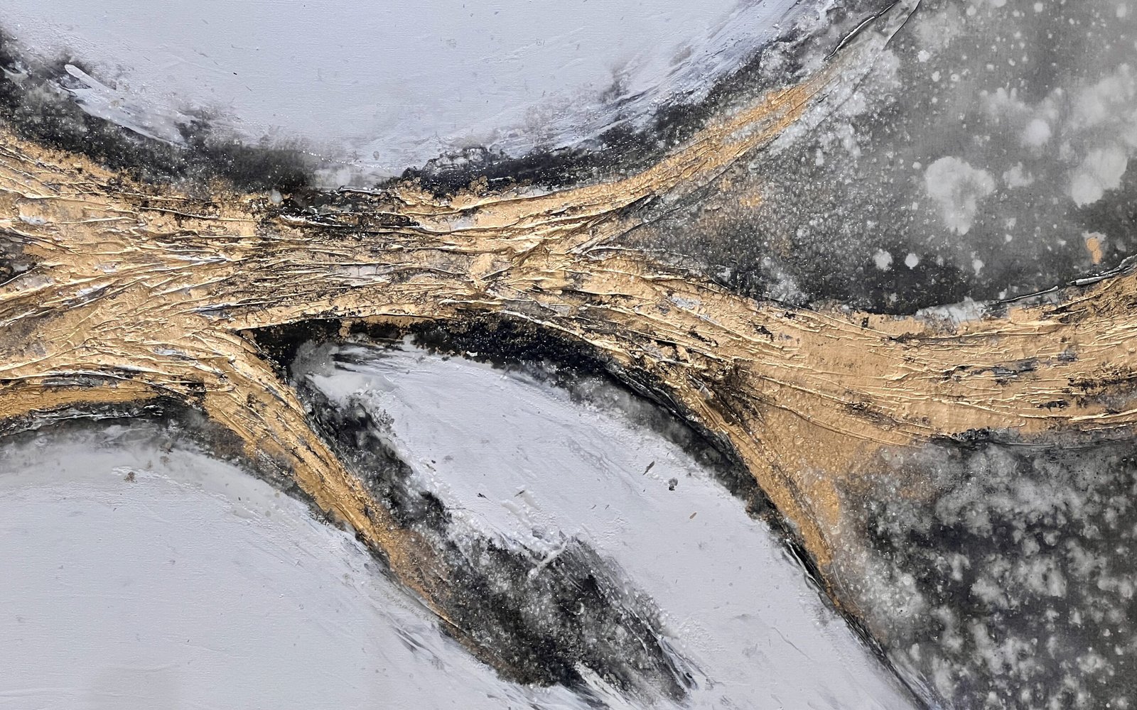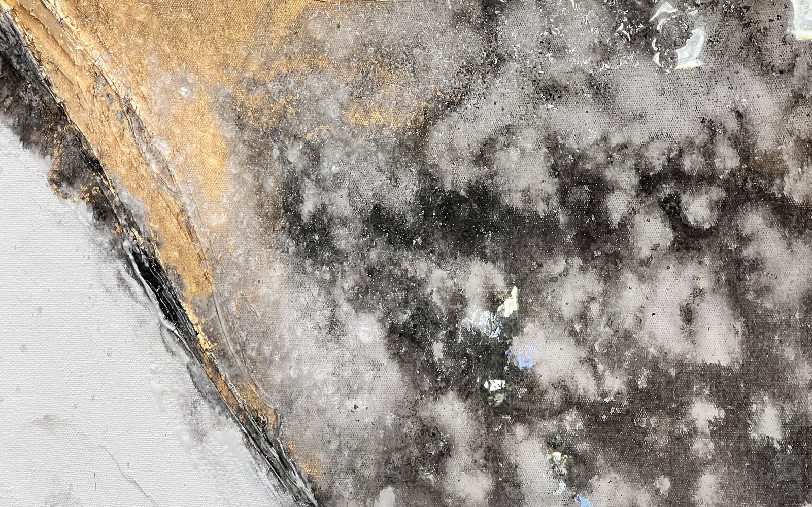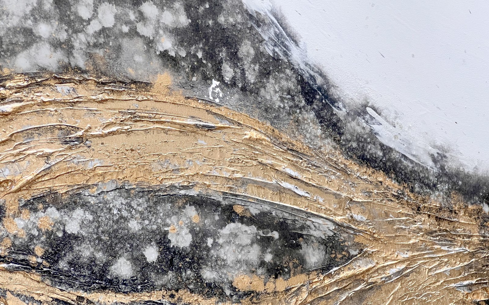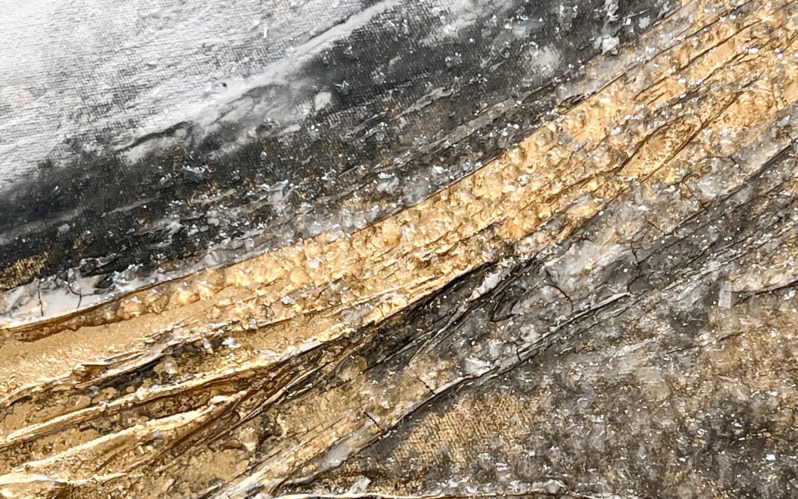 Técnica: Pasta, Acrílico, Hoja de Oro, Pintura al óleo con incrustaciones de Minerales y cubierta de Resina en detalles