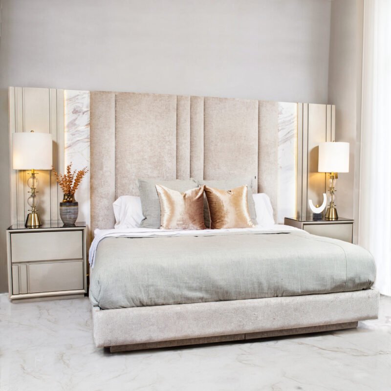 Recámara «Santorini» Champagne Panel Madera y Piedra